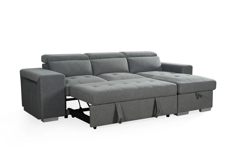 Unlike fixed sofas, this universal corner sofa bed with storage can be assembled either left-hand or right-hand facing, making it ideal for any room layout.