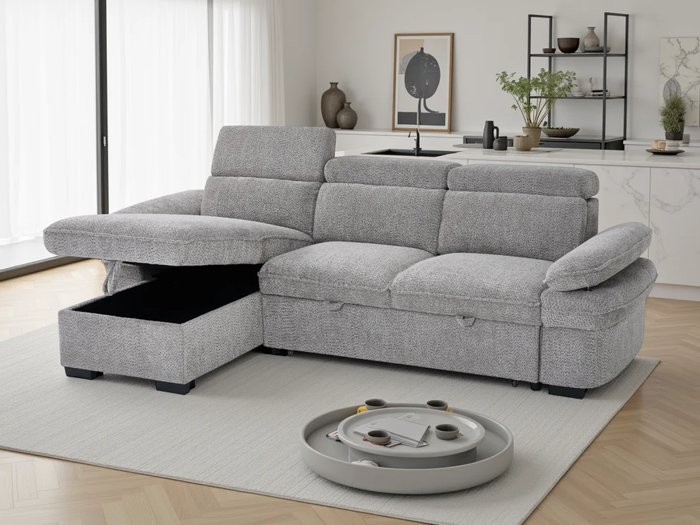 Universal Corner Design Fits both left and right-hand room layouts – perfect for a L-shaped sofa bed UK for studio flats or small living rooms.
