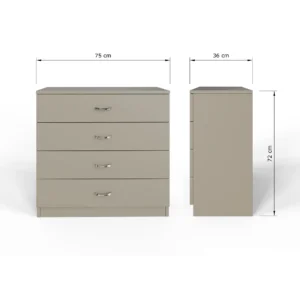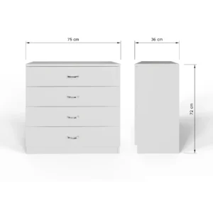• 4 Drawer: Height: 72cm, Width: 75cm, Depth: 36cm, Weight: 27kg