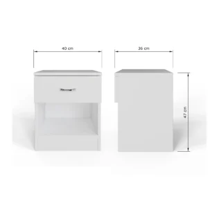 • Nightstand: Height: 47cm, Width: 40cm, Depth: 36cm, Weight: 11kg